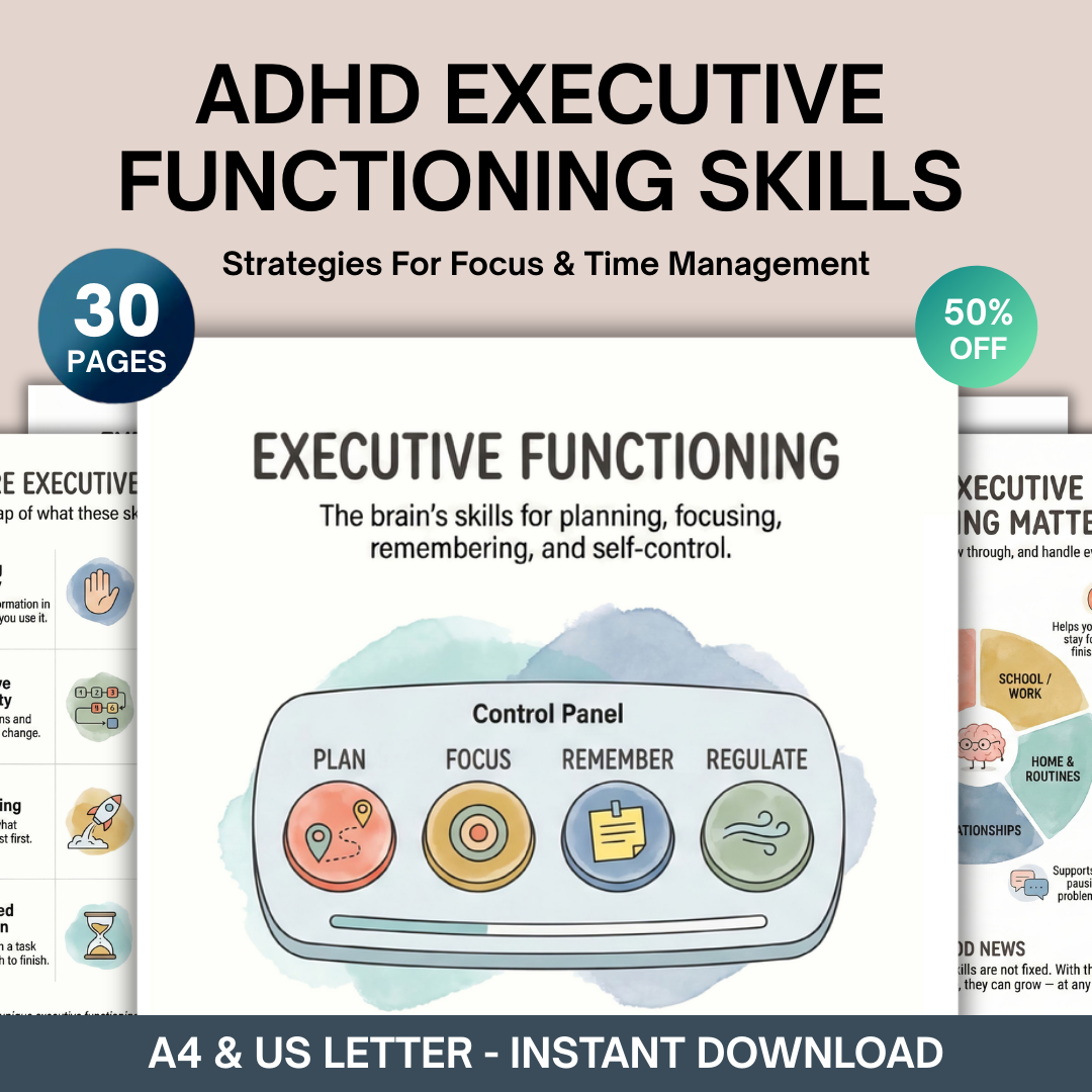 ADHD Brain Explained Cheat Sheet, Neurodiversity Educational Printable, Executive Function and Therapy Handout