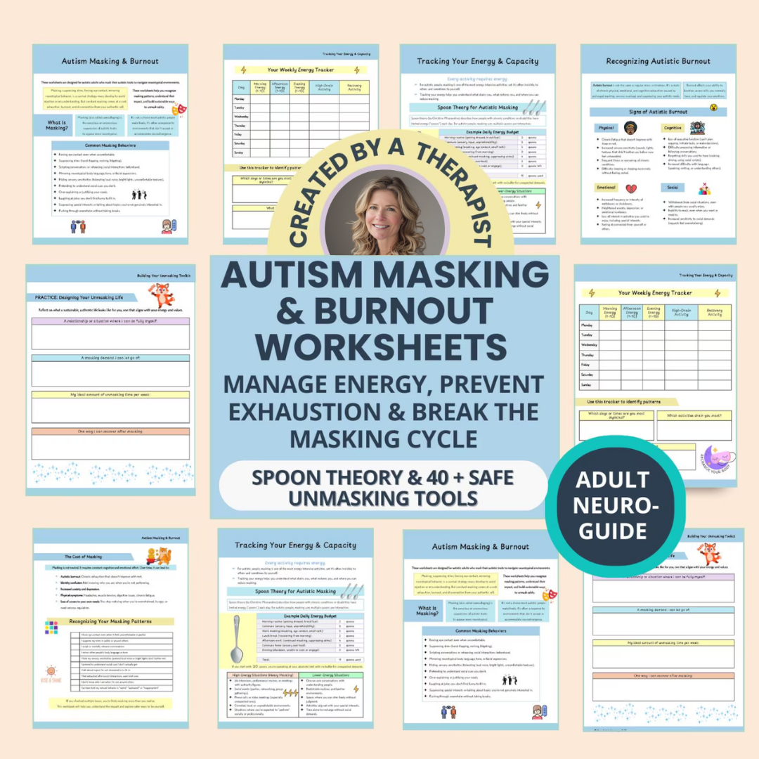 Autism Masking & Burnout Worksheets: Unmasking Support for Neurodivergent Autistic Adults (Fillable PDF)